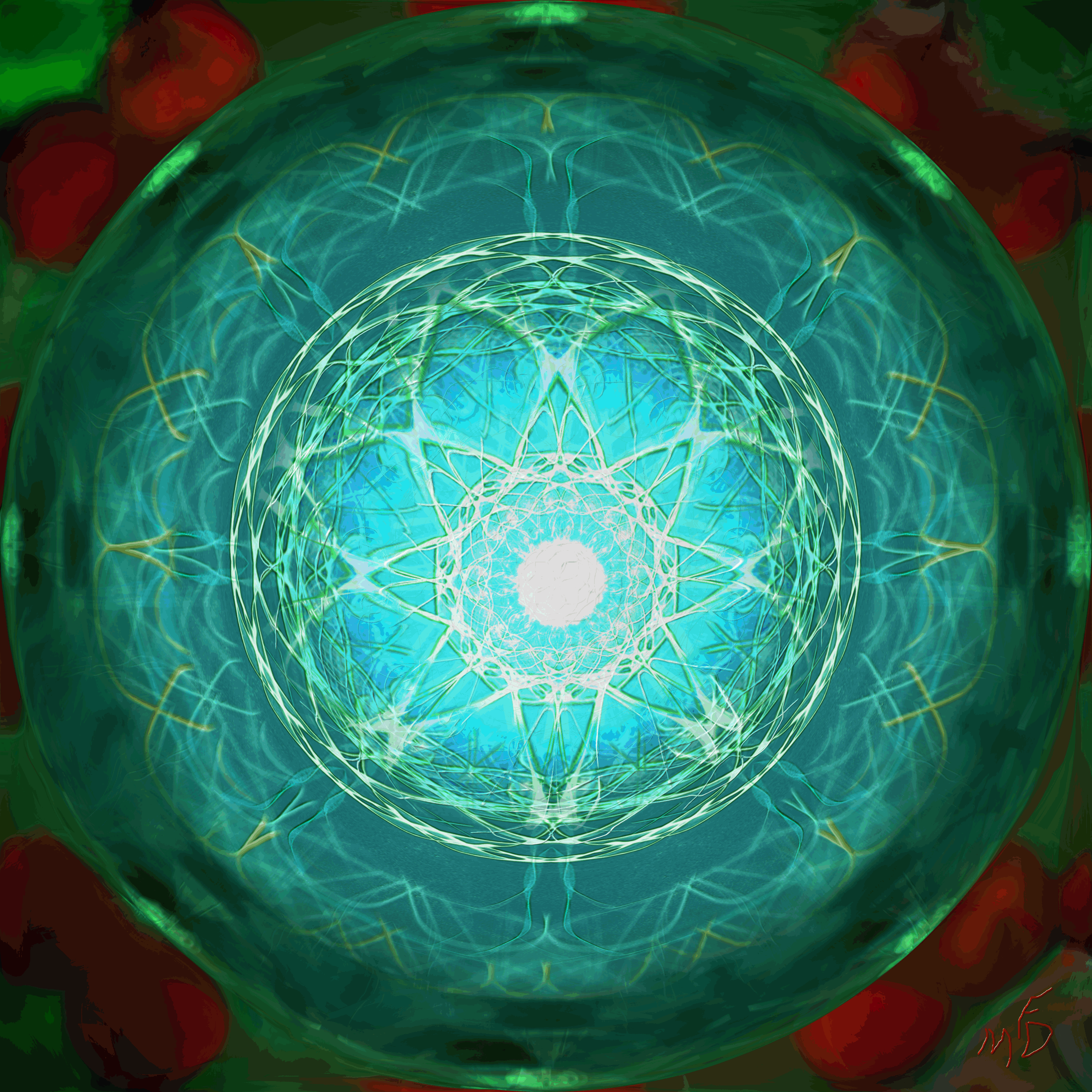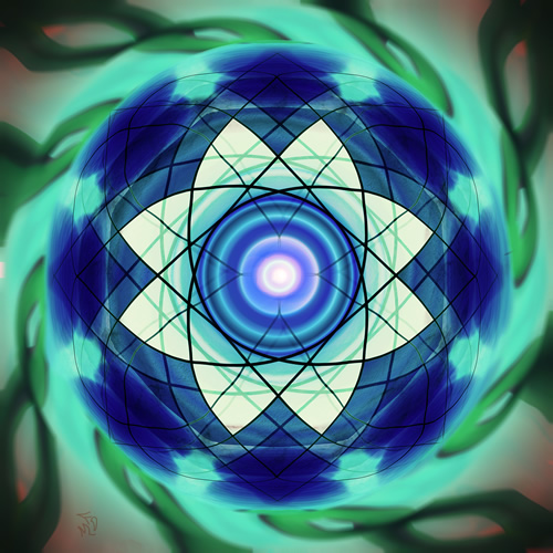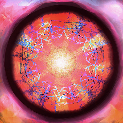 The Visual Mantra Collection is mandala-themed art created with specific healing intent. This artwork shares a circle within a square format and is designed to allow your eyes to wander but always draws them back to center, much the same way that a mantra does in meditation. Sacred geometry and numerological elements as well as color, symmetry and repetition are used to “tune” each painting to promote balance in specific energy fields in the human body and associated organs and tissues. Subtle interplay of these elements creates a different experience for every viewer, and each viewer can experience something new every time they interact with the artwork. Please enjoy our original music as you work with each Visual Manta. You may listen up to three times for free (without any advertisements) from the text link under each image (which will take you to our BandCamp site.) You may also use the Spotify player to listen to a quick sample of the music and then log into Spotify for free unlimited listening.